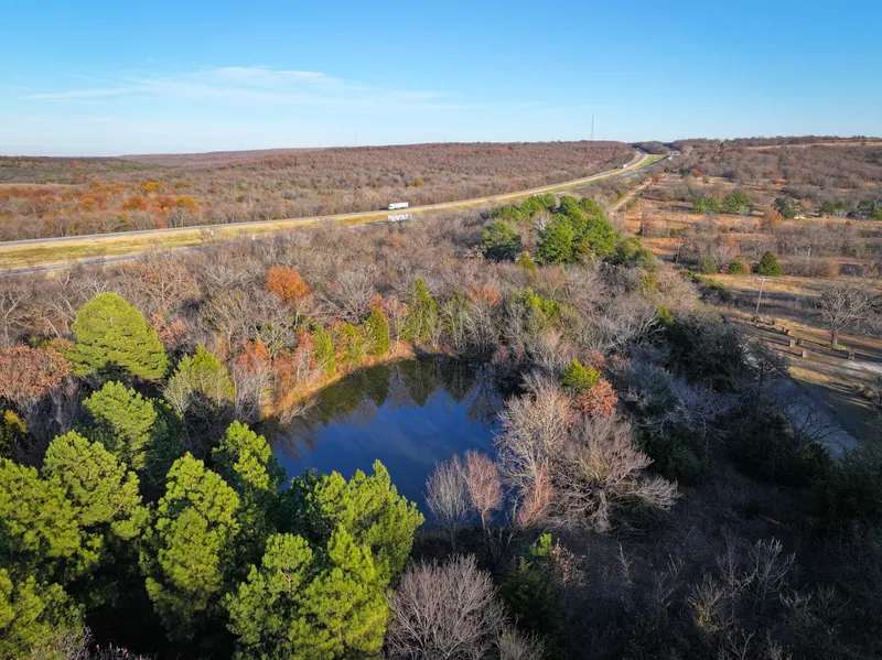 This exceptional 15 +/- acre property is located approximately 9 miles east of Henryetta, Oklahoma, along I-40 in McIntosh County. It consists of two distinct parcels sold as one: 8.5 +/- acres of untamed timber to the north of I-40, ideal for hunting, and 6.5 +/- acres to the south. The northern parcel is entirely wooded and surrounded by expansive tracts of contiguous timber, making it a prime location for hunting. The property features sturdy fencing along the highway, ensuring secure access. This secluded area, just west of Lake Eufaula, offers unmatched whitetail hunting potential, perfect for outdoorsmen. The parcel to the south of I-40 boasts a beautiful potential homesite among tall, mature pines, providing a serene setting for your forever home. A nicely sized pond enhances the landscape, offering stunning views and fishing opportunities. The abundantly thick tree cover serves a...