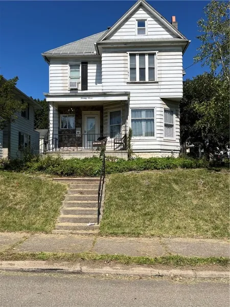 WELCOME to this spacious home boasting character and timeless charm. The large open living/dining area has tall windows with original hardwood flooring . The den/office area flows into the dining room that is filled with natural sunlight showcasing the built in cabinetry. Enter the kitchen off the dining area and find new appliances, island, and breakfast nook. A walk up attic can be accessed from the kitchen. Full bath downstairs. Stop to appreciate a vintage stained glass window as you make your way up the beautiful ornate wooden staircase leading to three large bedrooms and full bath. There is also a large laundry room with cabinets on the 2nd floor that houses a new washer and dryer set. The property has a full basement and a three stall garage partially equipped with heat, electric and TV. Enjoy the warm evenings relaxing in the side yard outdoor seating area. This home offers...