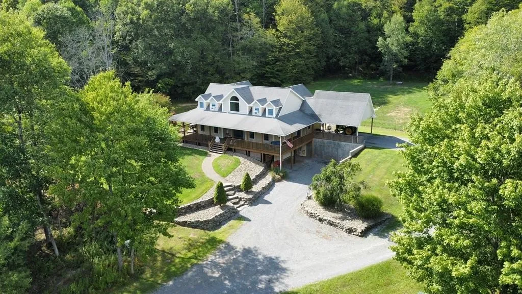 Charming 2-Story Cape Cod Home on 10 Acres in the Country Nestled on a serene 10-acre lot, this beautifully crafted 2-story Cape Cod home blends timeless charm with modern comforts. A picturesque wrap-around covered porch welcomes you into a thoughtfully designed layout featuring spacious living areas and elegant finishes throughout. Step inside to a stunning great room with soaring vaulted ceilings, expansive windows that bathe the space in natural light, and a breathtaking wood stairway with a balcony that overlooks the entire room—perfect for gathering or simply enjoying the peaceful country views. The main floor boasts a private master suite complete with a large walk-in closet, an oversized walk-in shower, a sleek stand-alone soaking tub, and dual vanities for a luxurious retreat. The galley-style kitchen offers functionality and style with a generous breakfast island, ideal for cas...