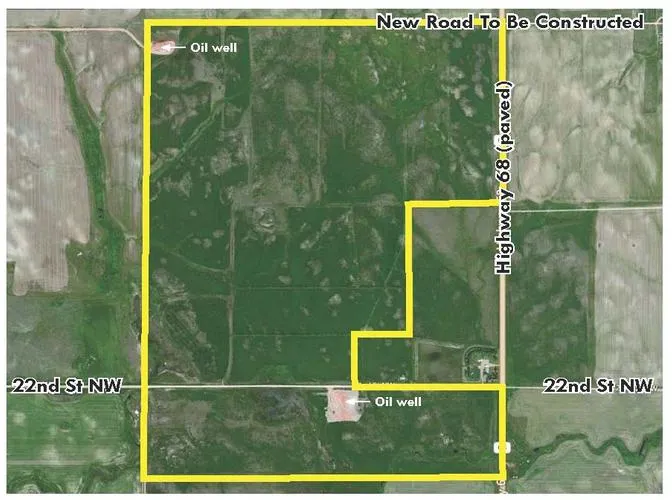 McKenzie County, ND land for sale near Alexander, North Dakota. Approximately 698 acres IN THE HEART OF OIL COUNTRY. The property is located 6.5 miles south of Alexander, ND, along the west side of Highway 68 (paved). There are 2 oil wells on the property (no mineral rights), a salt water disposal in the NW corner of Section 7, and a new East-West mile line gravel road to be constructed on the North border of the property.