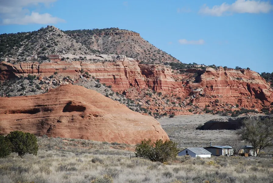 This is a very picturesque horse property of 158.8 acres. It includes a red sandstone rock formations with ancient petroglyphs. Paved private access from County Rd 19. Well maintained manufactured home, 3xBedrooms, study, 2x3/4 Baths + 1 full Bath, kitchen island, open to living & dining areas, heated by a large wood burning stove in the LR, several new storm windows, HVAC, 2022 installed 200A service, 2022 pressure tank. 800 sf adobe barn with inside chicken coop area for hay storage and long shop bench with lots of electric hookups. Property has 4-string barbed fence on 3 sides, 2 wells (1 residential, 1 agricultural), corrals, drinker, 5 acre horse pasture is fenced with 5-string non-barbed wire. RV parking. Restrictive Covenants exist but there is no HOA or LOA, no mineral rights. Incredible views and solitude. The Red Rock Ranches are the best in red rock formations.
