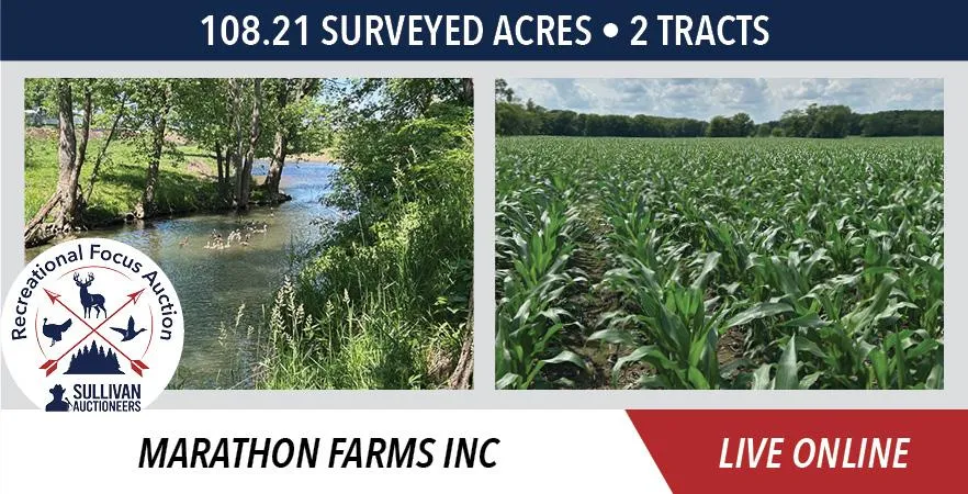 The Marathon Farms property will be sold on a price per acre basis, based on surveyed acres. Both tracts will be offered through the marketing method of Buyers Choice, whereas the high bidder can elect either tract for their high bid. If the high bidder does not elect both tracts, then the remaining tract will continue to be offered Buyers Choice until all tracts have been elected. The tracts will NOT be offered in their entirety at the conclusion of the auction.