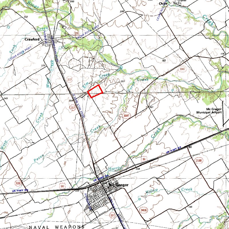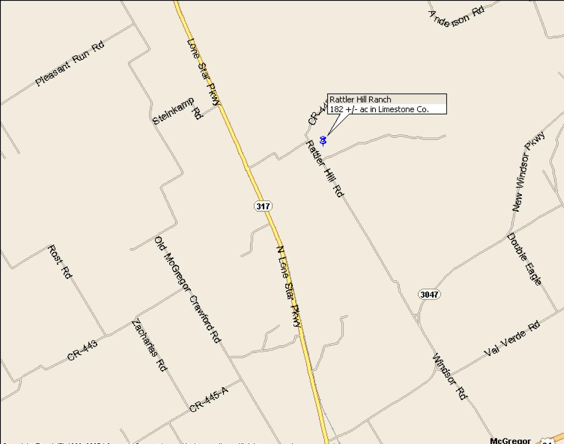 Research Parcel InformationTake Hwy 84 West from Waco about 12 miles; in McGregor take Hwy 317 north about 3.5 miles. Turn right on Rattler Hill, property begins on left side of road at 2nd hard right.