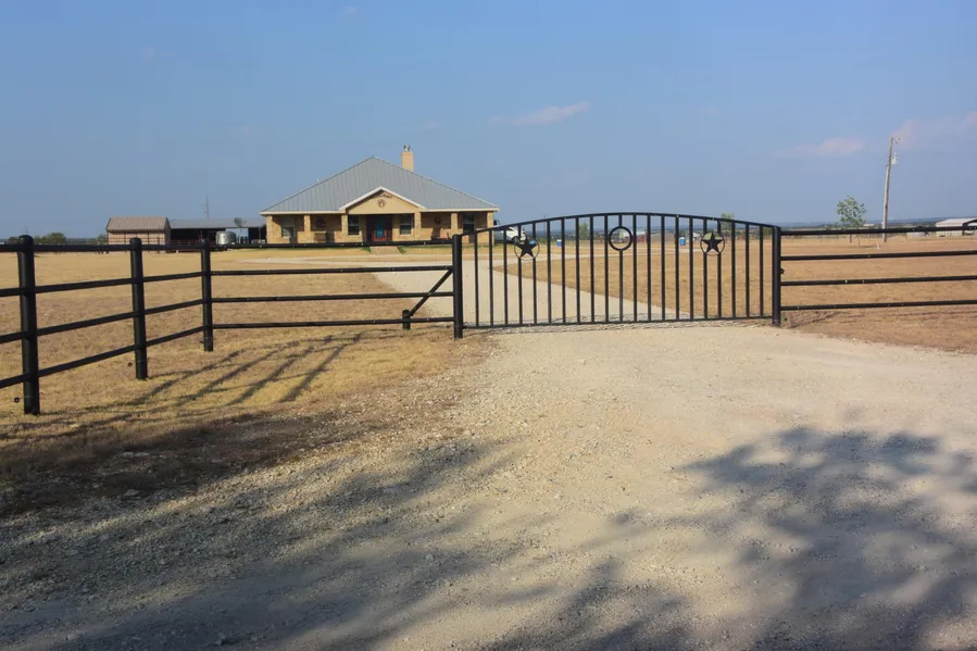 Beautiful Rustic style 3/2 w/ 2000 sq. ft of living. Home features open kitchen, granite countertops, ss appliances, custom cabinets, scorned concrete floors, spacious living w/ stone wb fireplace, additional bedrooms w/ jack n jill bath. Exterior features nice barn, storage building, hay/shop building, pipe entry way and fenced all around! This a wonderful small town and great place to raise a family!