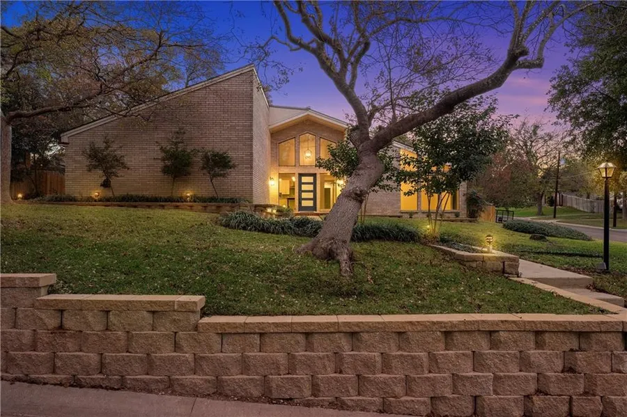 This thoughtfully renovated modern home in Woodway features tastes of Mid-Century style throughout that complement the high end finishes used in the renovation. Perched on a terraced and spacious corner lot in the heart of Woodway, this four bedroom, two and 1/2 bath, two living area home has a comprehensive layout that lends functionality throughout. The open concept kitchen is the hub of the home, surrounded by the formal living room, with a wood burning fireplace that is adjacent to the formal dining room and the family room sits off the front of the home. The primary bedroom features his and her closets and a private office/sitting room with outside entry, complemented by a large bathroom with dual vanities and a seamless tiled shower. Three guest bedrooms line the hall with a bathroom in the center, featuring dual vanities and a tiled tub/shower with a large built in storage. The ho...