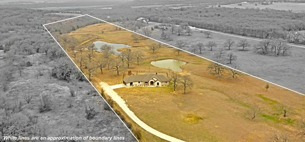 Experience quiet country living, fishing and hunting, picking berries, or just enjoying the view of your ponds and giant oaks from the covered patio. This outdoor paradise, features pipe fence and automatic front gate with all season road, mature post oaks and native pecan trees, fenced backyard and separate dog run, sprinkler system, 2 stocked ponds and wet creek, large fishing dock and campsite, ducks, deer, dove, wildlife galore, wildflowers, dewberries and mustang grapes, and hay production.