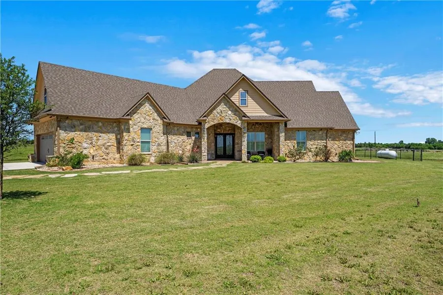 Unique opportunity in Lorena to own a beautiful custom home with acreage. This home is an AMAZING Control4 SMART HOME! This home includes custom lighting & music control throughout the house, central vacuum system, security cameras, all of which can be viewed and controlled from your phone. The open floor plan is the perfect mix for a family to enjoy the two gorgeous living spaces that each have their own stone fireplace. The kitchen is located in the heart of the home and includes upgraded appliances, granite countertops, an island and lots of seating areas. The floor plan flows nicely with a dining room that is open to the living space, as well as to the kitchen and the breakfast area. You will fall in love with the large patio that has an outdoor kitchen that has granite countertops, barbeque pit, ice chest, refrigerator space, double sink and outdoor speakers perfect for outdoor entertaining. Backyard of house is fully fenced. The primary suite is the perfect sanctuary that opens to a nice covered patio. Master bath has a spa like tub, a beautiful walk in shower and dual sinks, tv, double walk in closets plus an extra closet adjoined for storage. Upon entry to the back door through garage there is an incredible laundry room/mudroom combo with a sink, lots of cabinets and additional storage space and a broom closet. Upstairs you walk into a private theater room with lots of cabinets and counter space including a beverage refrigerator, lots of seating for family and friends.