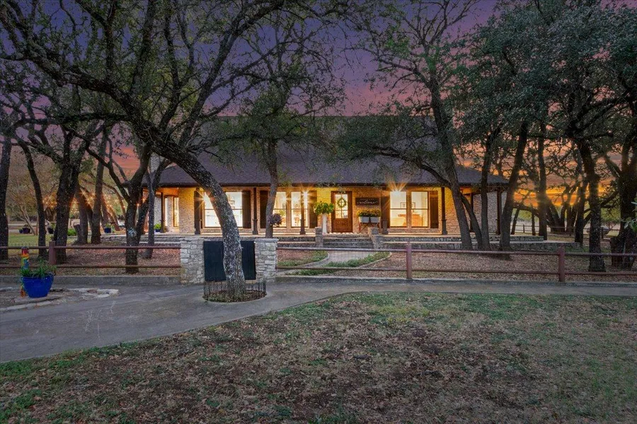 SANCTUARY OAKS...this name elicits all the emotions you will feel as you drive through the gated entry, amongst the massive oaks that create nature's beautiful canopy around this very special property. Perfectly situated on 5 high fenced acres, you will be visited by deer from sunrise to sunset as they wander among the oaks. This property will give you the privacy you crave with 360 degree views of the countryside to enjoy. From the stone exterior to the modern farmhouse interior, this home is instantly appealing! A wrap around porch with covered alfresco dining under the timbered outdoor space allows you to enjoy many entertaining options. Notice all the extra details such as edison lighting in the trees, a comfy porch swing, and a separate conversation area under the trees that create a memorable experience for family and friends. As you step up to the front door, you will be invited i...