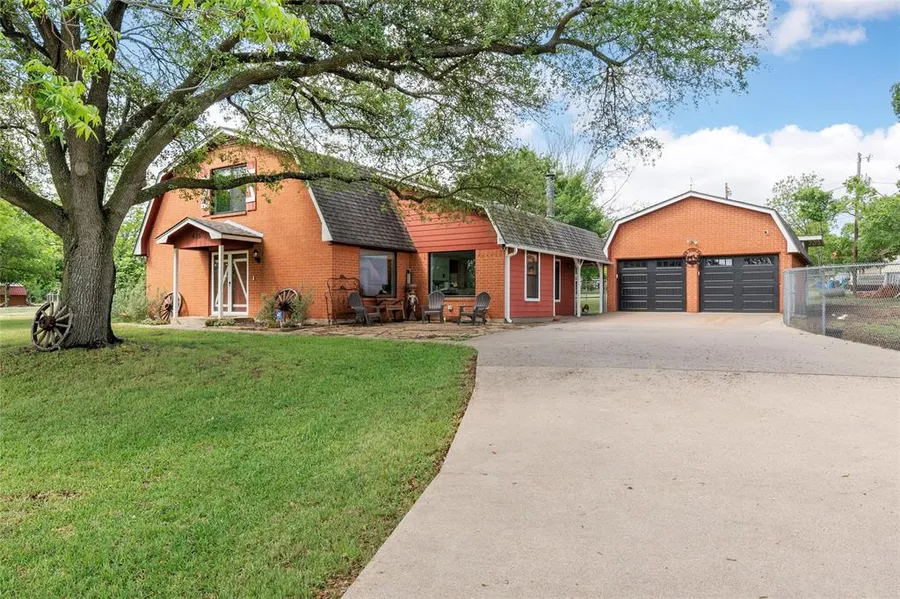 **Charming Country Living in Bruceville, TX** Nestled on a sprawling 1-acre corner lot, this captivating 3-bedroom, 2-bath, residence with an office, perfectly blends serene country living with modern conveniences. An inviting space for both relaxation and recreation, this property is a haven for those seeking privacy and potential, complete with a two-car garage. This home offers remarkable features of stylish bamboo wood flooring in the family areas and plush carpeting in the bedrooms. The heart of the home offers a freshly updated ambiance, adorned with picture windows that flood the interior with natural light. Enjoy the warmth of the Earth wood stove in the family room for cozy winter evenings. Relax on the covered balcony off the primary suite that offers a perfect retreat to savor sunrise coffees or evening sunsets. Primary bedroom is enhanced by extensive storage closet that runs the length of the house for seamless organization. A functional mudroom at the side entrance includes convenient washer, dryer connections and a sink hookup, ideal for managing the demands of day-to-day life. Outside, the property unfolds into a lush, picturesque landscape with mature trees. For garden enthusiasts, the expansive grounds feature raised garden beds, flourishing fruitful fruit trees and a chicken coop ready to welcome new chicks. Complementing this green expanse is a garden tool shed, and storage shed, providing ample storage space. Additional features include two RV parking spaces designed to accommodate both tall and short vehicles with a 30 AMP hook up, catering to travel and adventure needs. The playful spirit of this property is epitomized by the treehouse equipped with a play deck and slides, creating a charming space for outdoor enjoyment.