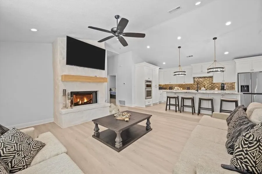 Welcome to this recently updated 3-bedroom, 2-bath home nestled on 3 fully fenced acres — a perfect blend of rustic charm and modern luxury!Step into the heart of the home: a stunning custom kitchen with marble countertops, an oversized kitchen island, stainless steel LG appliances, and beautiful chandeliers that flow throughout the home. The primary suite is your personal retreat, featuring a walk-in shower with dual showerheads and its own elegant chandelier — a spa-like space to start and end your day.