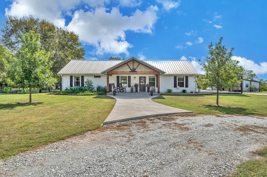 This home has a VA Assumable loan readily available for those who qualify 2.75%. Discover your perfect Texas retreat on over three acres of peaceful countryside, where modern comfort meets rustic charm. This exceptional home offers three bedrooms and three bathrooms with quality craftsmanship throughout. Enjoy recessed lighting, stylish fixtures, and ceiling fans in every room, creating an inviting atmosphere. The living area centers around a gorgeous wood burning fireplace framed by stone and a wood mantel, perfect for cozy evenings or entertaining guests. The spacious kitchen features a large pantry with a sliding barn door, while the generous laundry room provides ample storage and functionality. The primary bedroom offers direct outdoor access, blending indoor and outdoor living. Step outside to your private oasis and enjoy a fully fenced pool area with a bathroom and shower, outdoor kitchen and bar, multiple sitting areas, firepit for family reminising. Adding flexibility is La Casita, a separate living quarters ideal for guests, extended family, or rental income. Guest room is equipped with water, eletricity and a split unit. The large workshop has electricity that provides space for hobbies, projects, or extra storage. Above the workshop is a cozy multi-purpose game room or use as a gym. Practical upgrades include a durable metal roof and new fencing installed just two years ago. With over three acres of open space, you ll enjoy privacy, recreation, and room to roam. Located near Veterans Memorial Park, Connally High School, and convenient transportation routes, this remarkable property offers the perfect balance of country serenity and everyday convenience a place where comfort, style, and opportunity come together.