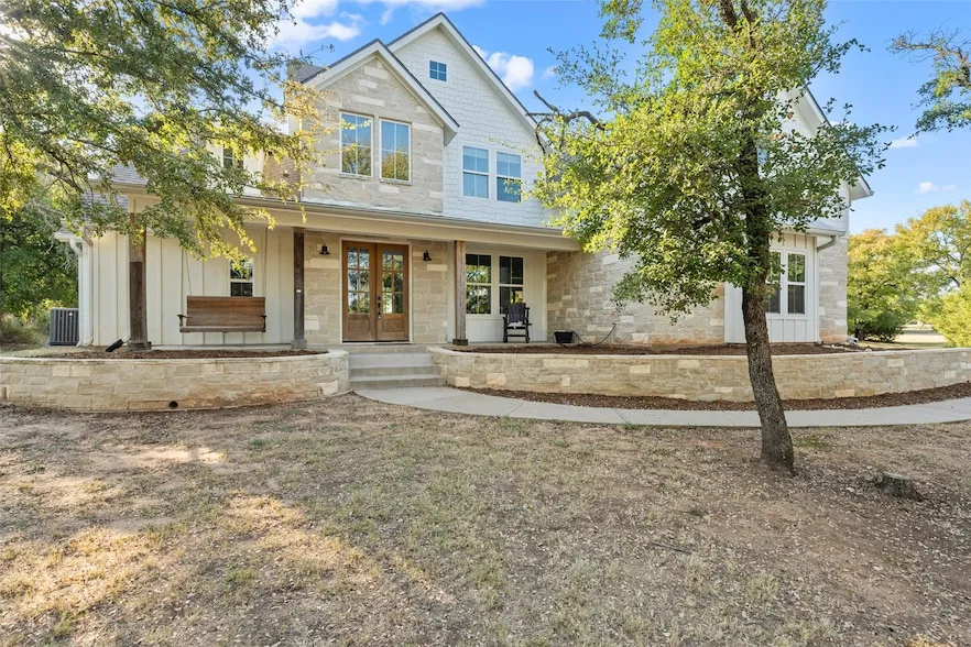 Experience refined country living in this exquisite Barn Light Homes masterpiece, gracefully set on 2.66 acres in the prestigious Hills of Childress Creek. This residence blends timeless craftsmanship with modern elegance, offering four spacious bedrooms and three spa-inspired bathrooms, including a master retreat with patio access, dual vanities, a soaking tub, and a walk-in shower. The light-filled open floor plan showcases rich wood floors, a formal dining room, and an inviting living area anchored by a warm fireplace. At the heart of the home, a gourmet kitchen dazzles with stainless steel appliances, a gas range, farmhouse sink, oversized island, and abundant storage perfect for culinary excellence and entertaining. A separate game room provides versatile leisure space, while expansive windows frame tranquil views throughout. Outdoors, a covered patio with built-in grill and fireplace invites year-round gatherings, complemented by a fire pit, dog run, and lush landscape. With a serene yet convenient location in the China Spring ISD, this property offers an unparalleled blend of privacy, sophistication, and comfort. Schedule your private showing today to immerse yourself in its luxury.