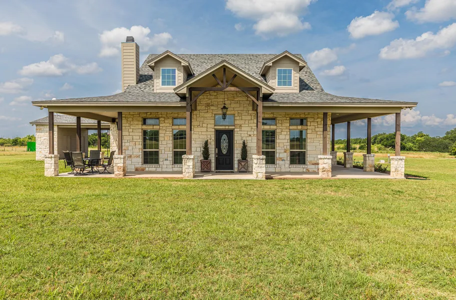 Welcome to this exquisite custom-built home nestled on nearly 45 acres. With 4 beds, 3 full baths, & 2430 sq-ft, this ranch boasts 2 ponds, seasonal creek, & storage building. The covered porch that wraps around most of the home. Marvel at the stunning sunset & sunrise views. As you enter through the back door, a versatile space awaits, perfect for a playroom, office, craft area, or additional living space, featuring built-in cabinets. The heart of the home is the kitchen, adorned with a large granite-top island, ideal for gathering. The living room is an oasis of comfort, complete with a stone fireplace, inviting window seats, & a unique fan that adds a touch of charm to the space. The split floor plan leads you to the luxurious primary suite with built-ins, dual closets, a walk-in shower, & dual vanities. Convenience meets style with the third bathroom, conveniently attached to the lau...