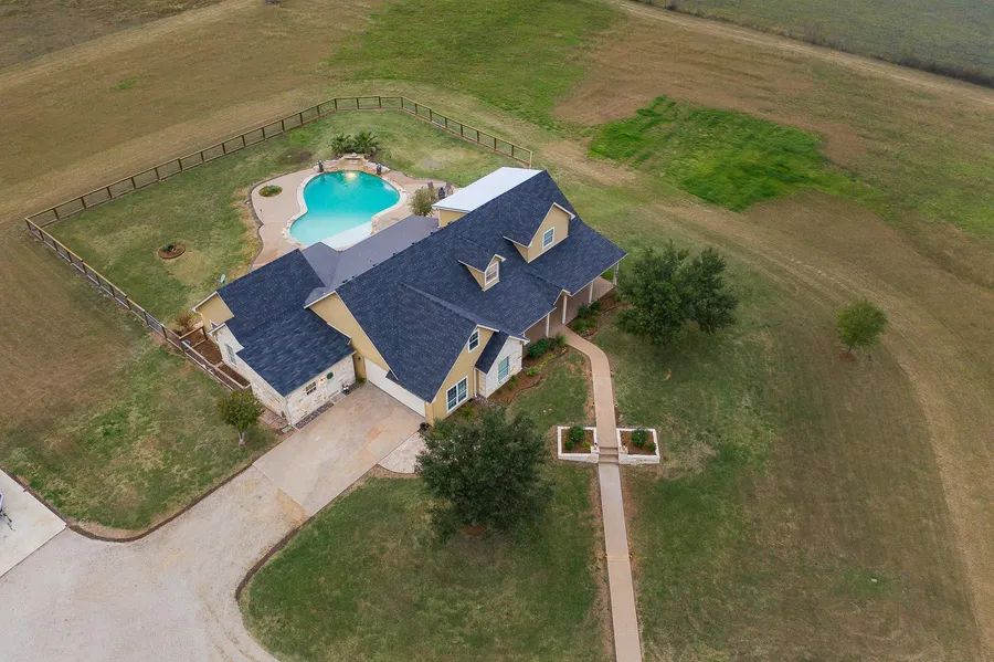 Come enjoy spectacular hilltop views, a tranquil pond, a huge in-ground pool and a BEAUTIFULLY updated home on 10 quiet acres in Robinson ISD! This property has it all including currently being classified as ag exempt. The main home includes 5 spacious bedrooms, 3.5 bathrooms, a wonderful open-concept kitchen/living/dining space, a sprawling laundry room, and a massive BONUS game-room/living space upstairs. This home has tons of custom detailing throughout including gorgeous vintage wood beams, a cozy stone fireplace, a shiplap accent wall and even 1,000+/- sqft of brand new finished out upstairs living space. The kitchen is DECKED OUT! It includes an island, buffet bar, gorgeous cabinetry, tile backsplash, granite countertops and commercial grade appliances. The exterior of this home is an entertaining oasis with plenty of room to roam. You will be blown away by the sunsets from the covered back porch overlooking the pool. More of the exterior features include a gated pipe entry, beautiful pond, custom backyard fencing, amazing views in every direction and tons of bonus concrete, landscaping and walkways. This property HAS IT ALL and will have you never wanting to leave, HOME!