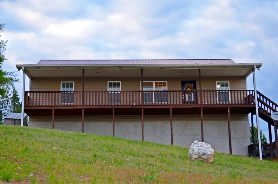 This gorgeous home is nestled among 12.24 acres of pure beauty! With a 1/4 mile long gated driveway, you will enjoy the mountain view from your large front porch or can invite your friends over to enjoy the above ground pool, patio and bar area in the back. The main floor of this home has a large open floor plan, including 2 bedrooms, an additional bonus room/office/bedroom, laundry room, walk in pantry and 2 bathrooms. Be sure to check out the huge walk in shower and separate jetted tub in the master bath. The downstairs has another bonus room/family room/bedroom, storm shelter and an oversized 2 car garage! You can't beat all the space and beauty of this incredible home!