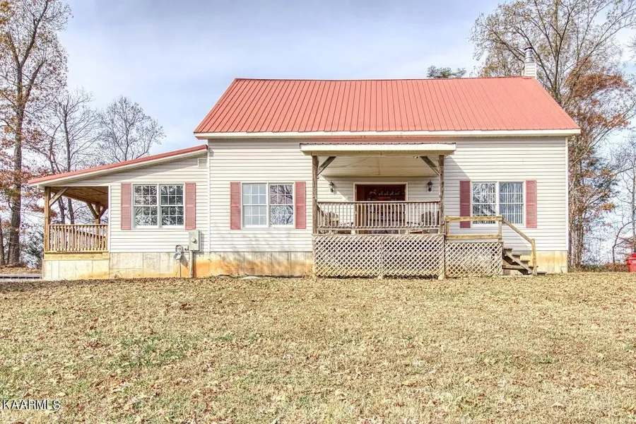 Country living with mountain views from the front porch welcomes you to this peaceful, private and unique traditional on the outside, but cozy log home inside. Walking up to the oversized deck you will notice how peaceful and private the back area is and a perfect place for relaxing and enjoying nature.Entering the log home into the kitchen and great room, you can't help admiring the knotty white pine tongue and grove cathedral ceilings with white oak and pecan flooring, as well as the poplar walls. (True post & beam with local timber.) Kitchen has custom cabinets with slide out drawers with plenty of open space for storage. Kitchen island with bar stools. Electric range/oven and in addition a gas cooktop. The great room offers endless possibilities of uses. See supplement