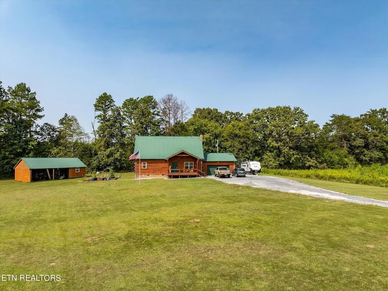 Welcome to your dream log cabin retreat! Nestled on 3.95 serene acres, this stunning 2011-built home offers the perfect blend of rustic charm and modern amenities. Featuring three spacious bedrooms and three-and-a-half baths, this cabin boasts an impressive attached two-car garage, a detached garage, a carport, and a dedicated 100-watt RV hookup. Step inside and be captivated by the top-to-bottom tongue-and-groove walls, stacked stone accents in the great room, and the warm glow of hardwood floors throughout. The main level offers an open floor plan with a spacious living and dining area, a large kitchen island, new appliances, and a cozy wood stove, making it the perfect space for entertaining or relaxing. The master suite on the main level is a true oasis, complete with a large walk-in closet, a luxurious en-suite with a jetted tub, and an electric fireplace. Upstairs, you'll find two oversized bedrooms, each with ample closet space, providing comfort and privacy for family or guests. Enjoy the tranquility of the outdoors from the screened-in back porch or explore the expansive, mostly flat property that's ideal for gardening, recreation, or simply enjoying the peaceful surroundings. A 30x40 pole barn adds even more storage and functionality to this incredible property. With a pre-listing inspection already completed, this meticulously maintained home is move-in ready and waiting for you to make it your own. Don't miss the opportunity to experience log cabin living at its finest!