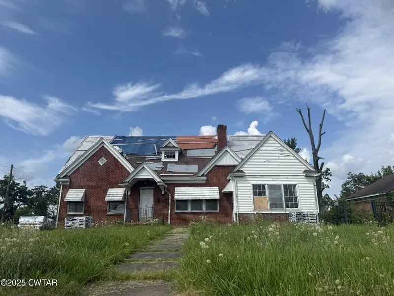 House was across the street from where the tornado came thru Selmer. The property is being sold in "AS IS" condition. Some of the windows were blown out during the storm and the roof was damaged considerably, but the shingles are in the yard for a new roof to be put on. This property could possibly be zoned commercial and is on the corner of Court and 8th Street. This home being damaged no more than it was shows how well the construction is.