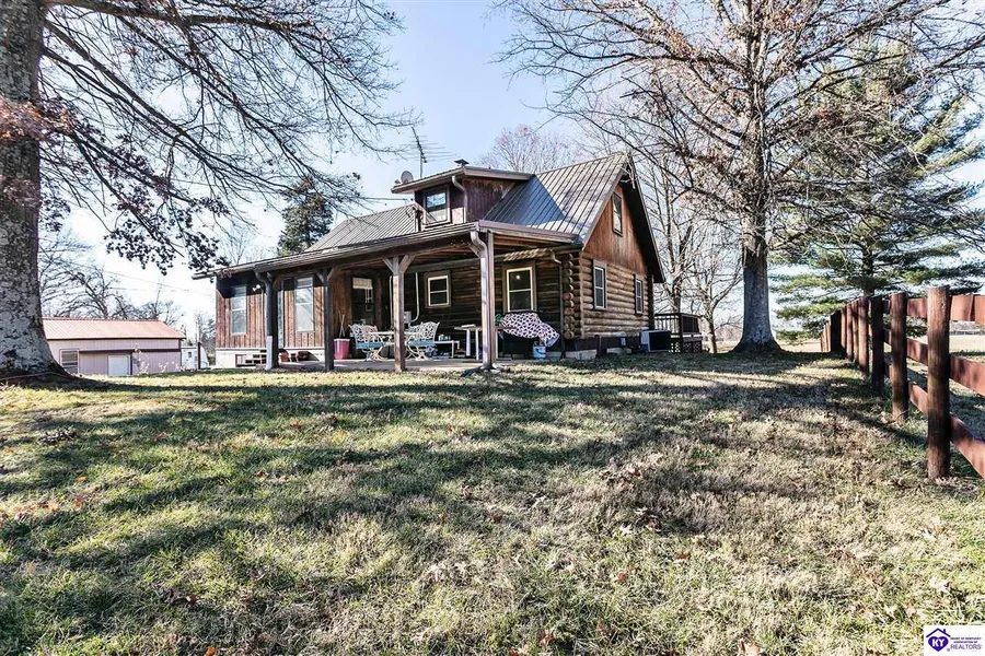 PRICE IMPROVEMENT, MOTIVATED SELLER! Nestled on 13.51 acres of serene countryside, this 2150 sq ft log cabin offers the perfect blend of rustic charm and modern comfort. Escape the hustle and bustle as you enter a world of peaceful quiet and privacy, making it an ideal retreat for those seeking a small farm lifestyle or space for recreational activities. The log cabin charm starts on the main floor with all the classic log cabin aesthetic, creating a warm and inviting atmosphere. With 2 bedrooms on the main floor (primary on the Main level) and an additional 2 bedrooms upstairs, there's ample room for family and guests. The kitchen boasts stainless steel appliances, providing a perfect blend of functionality and style and a split unit upstairs ensures comfort in every season. A sunroom provides the perfect spot to soak in the surroundings, and a full unfinished basement walks out to a 2-car garage for convenient access. Enjoy the beauty of mature trees surrounding the property, with a mix of wooded and cleared areas. Store all your recreational toys in the 30 x 40 shop, or fill the barn with farm pets that includes 3 stalls, and an extra outbuilding that offers endless possibilities for hobbies, storage or small farm equipment. Stainless Steel Kitchen: Situated in the heart of Brandenburg, KY, this property offers country living at its finest, with easy access to amenities and the tranquility of a rural setting. This property is perfect for small farm enthusiasts, recreational vehicle owners, hunting enthusiasts, and all nature lovers! This property invites you to embrace a lifestyle of outdoor enjoyment. Explore the potential of this charming log cabin, where every day feels like a retreat in the heart of nature. Schedule a showing today and discover the possibilities that await you in this picturesque slice of Brandenburg, KY.