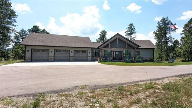 Contact Greg Klein 605-920-1342 with Century 21 Associated Realty for your showing of this majestic home with direct Forest Service access. Impressive views of Pillar Peak adorn the background of this 4 bedroom, 4 bathroom home on 2 acres. Private driveway approaches the large 3 stall garage. As you walk into the main floor, you are greeted with a vaulted ceiling and windowed scenic views that lay the backdrop to the nicely appointed open living, kitchen, and dining area. The kitchen has granite counter tops, an island overlooking the living room and views, and a longer prep counter area with an abundance of cabinet storage area. Wood grain luxury vinyl covers much of the main floor areas. Bedrooms and game room area with wet bar are mostly carpeted, and all the bathrooms are tiled. Primary bedroom suite with electric fireplace has walkout to the back deck, walk-in closet with laundry services, and primary bathroom with opulent tiled shower. Main floor also has another full bathroom by garage door entry. Lower level has a large game room with walkout to patio. There's a wet bar and bar seating with wood cabinets and tiled facia. The lower level has three bedrooms, all with closets and windowed areas. There are also two bathrooms on this lower level. Back on the main floor, the oversized 42x30 ft three-stall garage has lots of room for vehicles and toys. The back deck has low -maintenance trex decking. The privacy and views of this property are second to none.