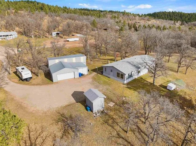 Very wonderful 5.96 acre property with lots of level areas and oak trees in Boulder Canyon very close to downtown Deadwood. Views poking through the trees, park-like setting, this is a dream lot in the hills located on a cul-de-sac in the Oak Mountain Country Estates subdivision. Horses and poultry allowed! The large garage has workshop and bonus toy-storage area, could easily handle 4 vehicles (two in main garage, two in attached bonus toy storage). The home has 3 bedrooms, 2 bathrooms and has had remodeling done in the past year with new LVP in the living areas and kitchen, paint through much of the home, and updated kitchen. Living room is very cozy with a pellet stove and lots of windowed views. Primary bedroom has an on-suite full bathroom. Laundry room connects to 2nd bathroom. There has been a seasonal creek on the property in the past. There is much off-street parking, so much co...