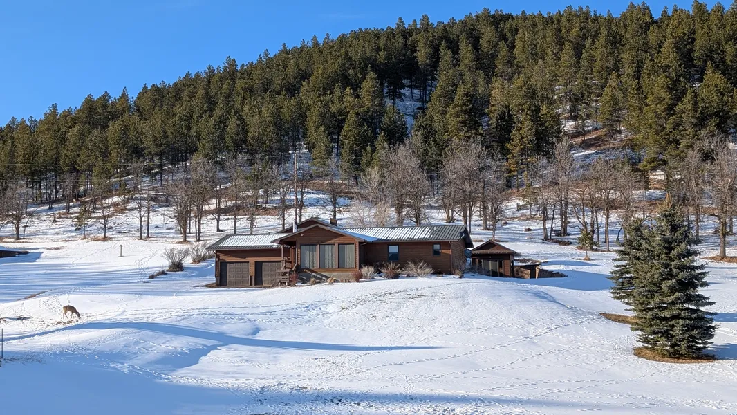 Contact Matt Klein 605-920-1341 with Century 21 Associated Realty Inc for showings and more information. This remarkable property sits on 2acres with an attached 2 car garage and separate detached shop/garage. This is a very serene forested setting in the 76 Ranch subdivision just outside of Deadwood city limits. There are two bonus exterior outbuildings - a dedicated enclosed hottub gazeebo and separate detached sunroom/variety building (which has tall windows and nice views, accessed in the backyard). The property borders US Forest Service behind the home. This 1993 built home has 4 bedrooms, a half bath on the main floor, a 3/4 bathroom off the primary bedroom, and a full bathroom on the lower level. Great views off the living room with the tall windows looking down the valley. Updated kitchen is open to the dining area and has doored access to the back yard. The basement has 2 bedrooms, full bathroom, laundry and utility room, and an abundance of storage options in the large unfinished game room. The oversized 2 car detached garage has a ton of storage and an upper-level workshop/office area accessed on the backside. The home has a metal roof, wood siding, and additional exterior parking options between the home and the detached shop. Make sure to grab this amazing property while it lasts!