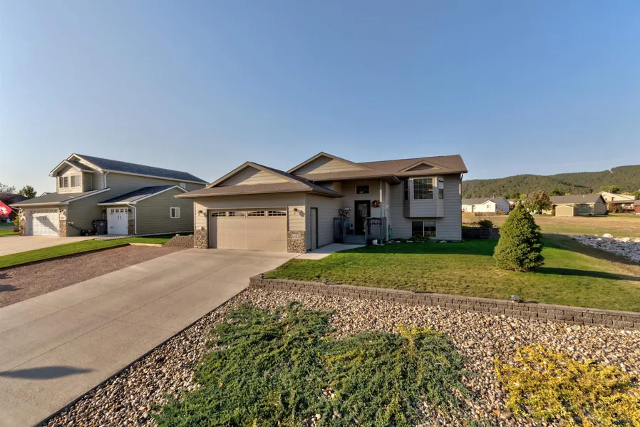 If you've been searching for that move-in ready home, look no further...This just might be it! Nestled in the heart of this quiet subdivision, this impeccable home is just like new. Featuring 4 bedrooms and 3 bathrooms within 2,212 sq ft. Bright open floor plan with vaulted ceilings and neutral decor. Large windows for lots of natural sunlight. Spacious kitchen with ample storage, including a pantry. Dining and living room area are perfect for family gatherings. The main floor offers two bedrooms and 2 bathrooms, including a nice sized primary suite and walk-in closet. Located downstairs are 2 more bedrooms, a full sized bathroom, laundry area and a cozy family room with a corner gas stove. Enjoy the private view of the Black Hills from the covered back deck. Beautifully landscaped and sprinkled lawn. 25x22 garage along with extra exterior parking. This home is a must see...Call today fo...