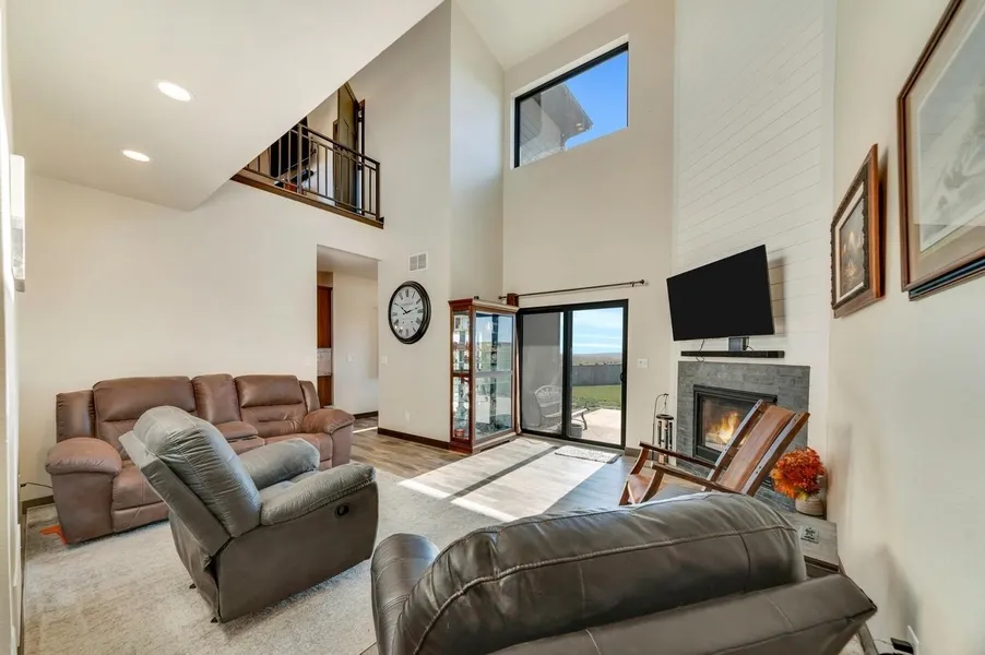 Imagine*TWO Large Ensuites*TWO offices/flex spaces *TWO entertaining areas *TWO laundry areas *THREE car + heated garage THREE fireplaces & HANDICAP ACCESSIBLE w/ flexibility for guests or multi-generational living, just an easy 10 minutes from Rapid City & easy access to I90. This high-quality, custom built, home is located on a 1.5-acre flat corner lot with room for a second driveway, RV Parking, a garden, SHOP,, fences and more. Quality features include: Class 4 shingles, wide interior doors, custom craftsmanship, large bathrooms, & no step entry where you can live on the main level or age in place. From the front entry, step inside & you’ll be captivated by the open, two-story, light-filled design, perfectly balanced with warm finishes, a gas fireplace with a stone surround, which together creates a cozy ambiance. Past the sliding doors to the partially covered patio & the expansive...