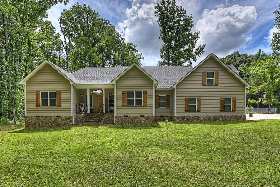 Stunning, newly built custom ranch home on over an acre lot in Huntersville. With an open, transitional floor plan, this 4-bedroom, 2.5-bath home boasts many exceptional features and architectural details such as extensive crown molding, solid wood interior doors and teak wood floors throughout. The large kitchen has granite countertops, stainless steel appliances, a shiplap backsplash and a great island with shiplap detail. The kitchen flows seamlessly into the great room with a stacked stone fireplace and recessed lighting. The generously sized master bedroom has an en-suite bath with a tiled walk-in shower, tile flooring and dual sink vanity with granite. Upstairs, there is a bonus room that has endless possibilities. Unwind from a long day on the back, covered stone patio or the oversized deck and enjoy the serenity of your private backyard. Conveniently located to Lake Norman, Birkd...