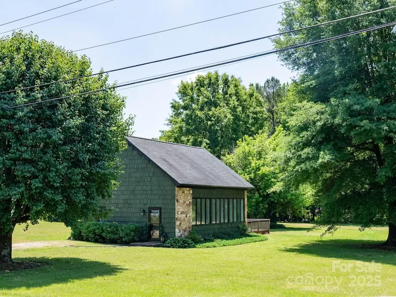 Nestled on a level 1.57-acre lot with no HOA, this charming cottage offers privacy, convenience, and investment potential. Minutes from Blythe Landing Park (with boat launch), Birkdale Village, Jetton Waterfront Park, marinas, and I-77, it's ideal for everyday living or short term rental potential. Designed with a 3-bedroom septic, it can be converted back to a full 3-bedroom layout. Interior updates include newer LVP flooring, HVAC, paint, and modern lighting. The open floor plan features soaring ceilings and a dramatic wall of windows for natural light. A spacious deck overlooks a peaceful, tree-lined backyard perfect for relaxing or entertaining. A large shed/workshop with electricity adds storage or hobby space. Bonus: potential to subdivide buyers should verify with the Town of Huntersville. Seller makes no representations. Great as a primary home, vacation getaway, or rental investment, this property offers charm, flexibility, and future upside.