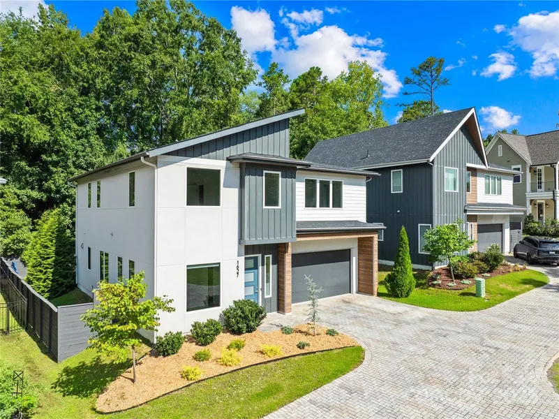 Stunning 4BR/3.5BA contemporary home in one of Charlotte's most sought-after locations-just a short walk to parks, shops, and dining and uptown! Built with exceptional craftsmanship and eco-conscious details, including a permeable paver driveway. The spacious, fenced backyard offers rare privacy, mature trees, HOA-owned land directly behind ensures no future development. Inside, enjoy a light-filled open floor plan with a dramatic foyer, open staircase, and a flexible office/playroom. The huge chef's kitchen features European-style cabinetry, a large island, and expansive windows. Upstairs offers 4 spacious bedrooms each with walk-in closets, 3 full baths with floating vanities, and a central laundry room. Modern design meets everyday functionality-don't miss this one!