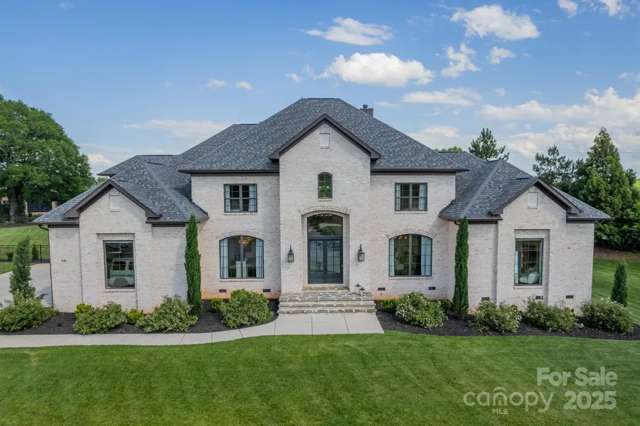 Spectacular custom brick home w/all the bells and whistles! Elegant, curved staircase, oversized DR & gorgeous lighting. Open floor plan with loads of natural light. Gourmet chef's dream kitchen showcases a huge marble island, wine cooler, SS appliances, beautiful white cabinetry and pantry. Beautiful, engineered wood floors. Large office on Main. Massive Primary BR on main w/large reading area leads to impressive en-suite bath showcasing a 15' ceiling, stunning shower, garden tub, marble counters & large walk-in closet. Upstairs includes BR w/private bath, 2 BR's w/shared bath & Bonus Room w/private bath & closet. All with custom closets & marble countertops. This home is impeccable decorated & adds to the grandeur of the limestone gas fireplace & 20" coffered ceiling in GR. Central Vac. Backyard oasis makes entertaining a breeze w/a large, covered porch sanctuary, built-in gas grill & a designer gunite pool for all to enjoy. 3-car garage. Irrigation on front/sides. Min from 8-485. 3 minutes from local park.