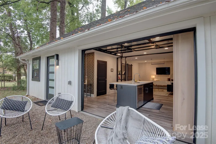 Experience modern comfort and style in this newly built guest house featuring luxury designer finishes and high-end amenities. The sleek gourmet kitchen, complete with a large island that seats four, opens seamlessly to an outdoor sitting area and garden through a full glass garage door-perfect for indoor-outdoor living. Enjoy a spacious great room with a smart TV, an upscale bathroom with a frameless glass shower and custom tile surround, and a large bedroom with a king organic mattress, fine linens, desk, and blackout blinds for restful nights. Located in a quiet, private neighborhood in Lower South End, this home offers convenient access to SouthPark, the Airport, Uptown, South End, and Charlotte's sports stadiums. The property sits behind the main house (also a rental home) and shares the rear garden, hammock, and gas grill. Lease Options: Can be rented short-term or annually, fully ...