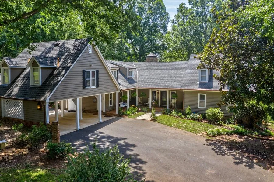 THE ANSWER. In todays world, many desire to find a home with property that provides privacy, solitude, and enough space to enjoy the outdoors and animals. Unfortunately, lifestyle often dictates that the home to be close to amenities, have easy access to an airport and major highways, and of course, be affordable. Finding such a home is a significant challenge; nearly an impossibility, however, you will find the answer located in the southwest corner of Mecklenburg County. There, in a private estate community, discover the 9.8-acre estate home at 113525 Woody Point Road. Recently, the home underwent an extensive renovation/upgrade that added to the inherit advantages/features of the design. Paint inside and out, new lighting and plumbing fixtures, and a security system are part of the renewal. Situated near Lake Wylie, this safe, peaceful sanctuary has the feeling of a nature preserve. Mature hardwoods surround a custom home, a multipurpose barn/shop/party center, community 8+ acre pond with private owners pier, and access to a community boat dock on Lake Wylie. Minutes away from Douglas International Airport with easy access to I-485, short drive to uptown Charlotte, and located near all desired amenities, this property checks all the boxes. From the instant you enter the drive through the brick winged columns with gas lanterns, you know this is a special place that will accommodate a special lifestyle. The drive winds past a large meadow, perfect pasture for your favorite animal(s), or perhaps an athletic field for more spirited events, then past the barn with a large lawn, designed and built to be used for numerous purposes, and finally presents the cottage-style home, circling through the triple portico. This inviting home, nestled in the shade of mature oaks, greets you with an L-shaped covered brick front porch; just one of the several outdoor living spaces found here. Inside the foyer gives way to a great room and on through double sets of French doors to a large multi-level deck. This distinct room offers attractions in every direction; 2-story cathedral ceiling with wood beams, oversized fireplace with brick surround and custom wood mantel, a wall of built-in bookcases under a second-floor loft accessed by a wooden spiral staircase leading to the loft and on to a private guest suite. But this is just one of many private retreats in this home, all eager to provide quiet, relaxing solitude. With 4 bedrooms, 4.5 bathrooms and nearly 5,000sf, the designer successfully provided lots of room while producing an intimate, cozy atmosphere. The floorplan features a main floor master and a main floor guest suite, dramatic great room and comfortable family room melting into the breakfast space and on to the kitchen. The remodeled kitchen is extremely efficient; has a center island, high quality appliances and oversized pantry with barn doors. For those special occasions there is a dining room adjacent to the kitchen. A back hall with oversized laundry room and stairway to the 2nd level opens to the auto court. The 2nd level includes 2 bedrooms and 1 bath, bonus room with fireplace. Additionally, there is a lower level room (currently an office) with an outside entrance. The home offers numerous special features; reclaimed wide plank heart-of-pine floors in most of the main floor rooms, ceiling fans throughout, powder bath, chair railing, house water filtration system, walk-in attic, main floor HVAC with gas back-up, and reflective roof barrier are just a few of the special treatments. Outside living spaces are abundant beginning with the multi-level deck accessible from the master bedroom, great room and family room. The deck is perfect for entertaining or just another of many locations to enjoy a solitude moment. A stone walk originates at the deck and traverses the English garden and leads to the barn area. This area offers the main barn building, RV/trailer storage carport, equipment shed/run-in shelter and available open space. The building features a covered patio, lounge with a brick floor, fireplace and full bath; 3 current stalls and room for more, as well as a large walk-up loft area, ideal for gatherings or hay storage. The board and batten, metal roof building can serve a multitude of purposes, from stalling your horses to hosting a party. Adjoining the property is an 8+ acre stocked community lake, with your own private pier, and there is an easy access trail to Lake Wylie and a community boat dock. Its all here, waiting for you, the answer to your dream home.