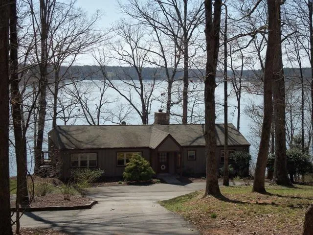 3+AC SECLUDED LAKE LODGE with 536FT sunset waterfront on main channel of Buggs Island Kerr Lake. Built in 1974 on one of the best lake lots, and professional quality rebuild in 2002 with new roof, well, septic, heating, paved circle drive. Has beautiful Tongue & Groove pine panelling throughout. Custom kitchen with premium appliances overlooks screened porch and bi-level deck with new outdoor shower. Floor to ceiling rock hearth fireplace. Total 4BR/3BA with 2 master suites. Grandfathered concrete steps to U-dock on sandy beach, plus 2 buoys for private shoreline.