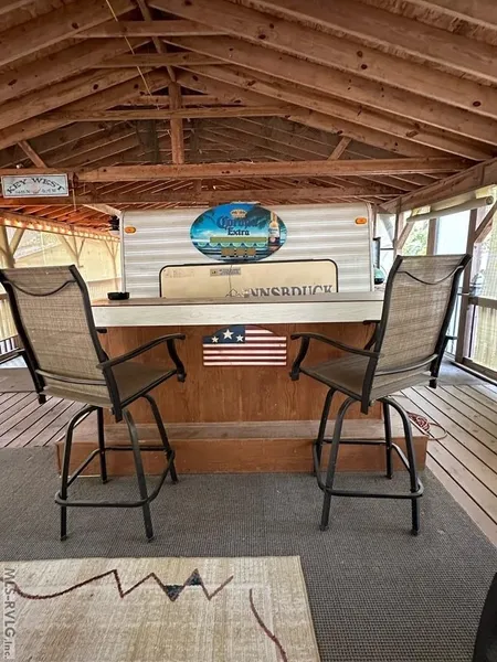 You will not want to miss this treat! Large porch with bar and outdoor living, privacy shades, easy parking, 2 bedrooms and a short golf cart ride to the pool or boat landing.... Can not get much better than this. This home features ample opportunities. MOVE in ready, just need to pack your bags!