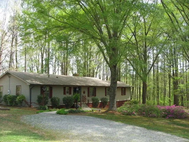 Secluded/Charming Lake Front Home on 1.5 acres overlooking beautiful Buffalo Creek on Kerr Lake.This home is surrounded by water with over 500 ft. of shoreline with great views/gentle slope to dock.Features of the Home:Family Room with rock fireplace and hardwood floor, eat-in kitchen, screened porch/deck, 2/3 bedrooms, 2baths, formal LR/DR, basement workshop, updated furnance, generator, landscaped.