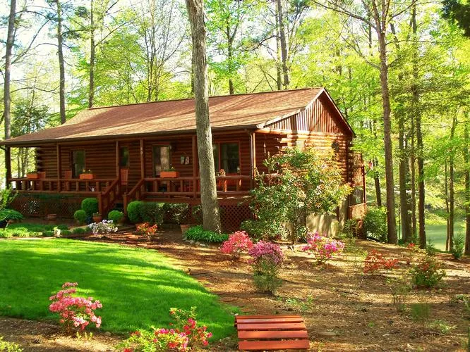 Well maintained 3BR/2.5 BA log house just a couple lots over from the main lake. Many recent updates in 2005 include the installation of a new heat pump & central air, and the bathrooms remodeled. In July 2010 new upstairs sliders were installed w/ lifetime warranty. Pretty landscaped lot. Gravel circular drive. At the waterside the water is 6' deep. There is a dock and boat slip and there shouldn't be a problem to replace it with a double boathouse. The subdivision just recently put in a new boat ramp for residents. Close to I-85.