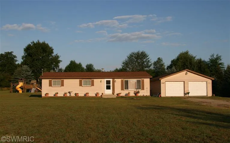 Nice 3 bedroom, 1 bath home, with full partially finished basement only 15 minutes from Big Rapids or 30 minutes from Mount Pleasant. located in Rodney right on M-20. Roof, furnace, water heater and bathroom have all been replaced in the past 7 years. Charter Cable for all your internet, TV enjoyment. Large open yard with plenty of room for the kids to play and includes a top of the line play gym to keep them all entertained. The two car garage is insulated and has a heater for those days when Dad has to work on the cars in the cold weather. Has open land that could be fenced in for a horse and includes 2 open sheds that were used for shelter and one for hay storage. This would make a nice home for a first time home owner, or small family.