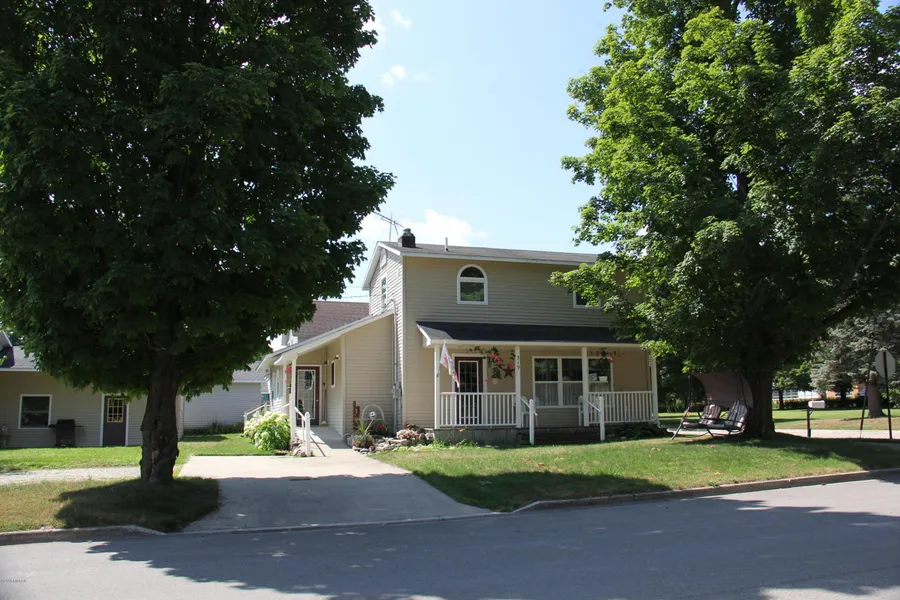 Make Big Rapids your home in this 3 bedroom 2 full baths, 2 1/2 bath home Total Remodel in 2002. You enter this home to large welcoming dining area with custom kitchen which is open makes a great area for those large family dinners or parties which allows you to be a part of the dinner while preparing. Your guest will be comfortable with setting around the dinning area looking out the round window. Off the dining area is the living room with a rounded stair way to the up stairs with hardwood steps and rounded wall with a great picture of Eagles in flight going up the wall on your way up to the loft with bedroom and 1/2 bath attached. Off the kitchen you will find the laundry area with a wash sink 1/2 bath attached. The master suite with a wall of closet with pull outs on each.