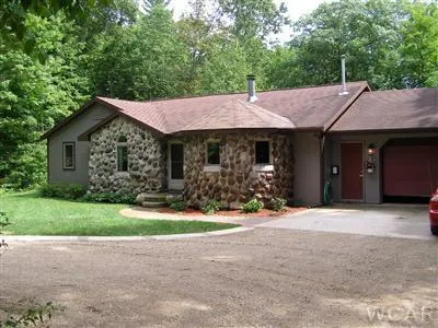 Beautiful ranch home. Custom built high quality home. Large rooms. Fireplace. Hardwood and ceramic floors. Specialty lighting and other features makes this home truly unique. Built in shelving. Field stone retainer walls and accents. Awesome tiered deck facing beautiful back yard and creek with stone firepit is a draw. Geothermal heating system is the latest technology and very cost-effective. You WILL LOVE it.