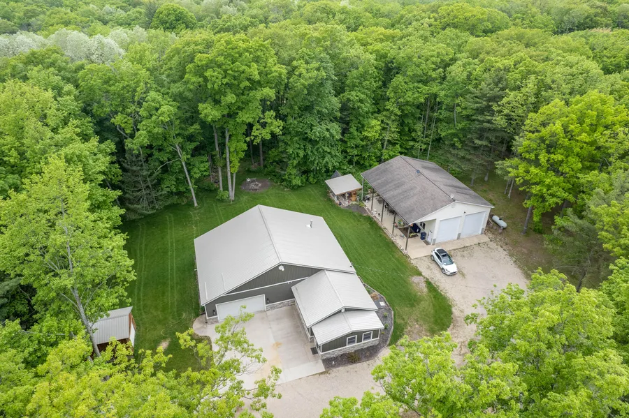 Welcome to the recently remodeled cabin turned into the ranch style home of every sportsman's dream! This home has an enormous 3,260 Sq Ft. floorplan which includes 3 BR & 3-1/2 baths. The current owners spared no expense when adding on the 2,000 Sq ft. addition in 2017, it features soft close cabinetry, heated floors & vaulted ceilings not to mention all the designer touches throughout. Finish the kitchen with your vision and enjoy living in luxury & serenity. The home has a 2 stall attached garage, 2 stall detached garage, large shed, an outdoor kitchen option & a 1 BR 1 bath 'apartment', great Air B&B opportunity, built on top of the coolest man cave inside of the 50x30 pole barn big enough to house all your projects & toys!