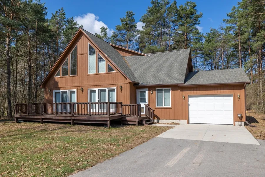 Nestled within a serene, wooded backdrop at the end of a cul-de-sac, this remarkable 2004-built Chalet boasts almost 2000 square feet of living space.Upon entry, the great room welcomes you with its spacious open floor plan, soaring vaulted ceilings, and a striking stacked stone fireplace that adds a touch of rustic charm. The two wall A/C units (each 10,000 BTU) are a nice extra in those hot summer days! The kitchens center island is perfect for hosting gatherings and entertaining guests. Members of Canadian Lakes are privy to an array of amenities, including golf, boating, fishing, private beaches, tennis, and an endless stream of social activities to participate in!