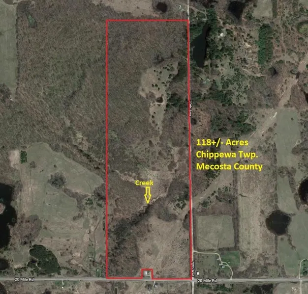 Located between Barryton & Chippewa Lake in Mecosta County, this property has a lot to offer! There is a great mixture of open areas, woods, cover & water to attract & hold those big bucks! With road frontage on 70th Ave & 20 Mile, there are several different great possible build sites and access points. A creek runs through the property offering a great water source & thick cover nearby for the wildlife! There are rolling hills, ravines near the creek, trails through the mature timber, tall grassy areas, excellent food plot locations and a gated entrance on 70th Ave just waiting for you to enjoy! Call Brandon Podolak today at 989-251-9060 for your private tour!