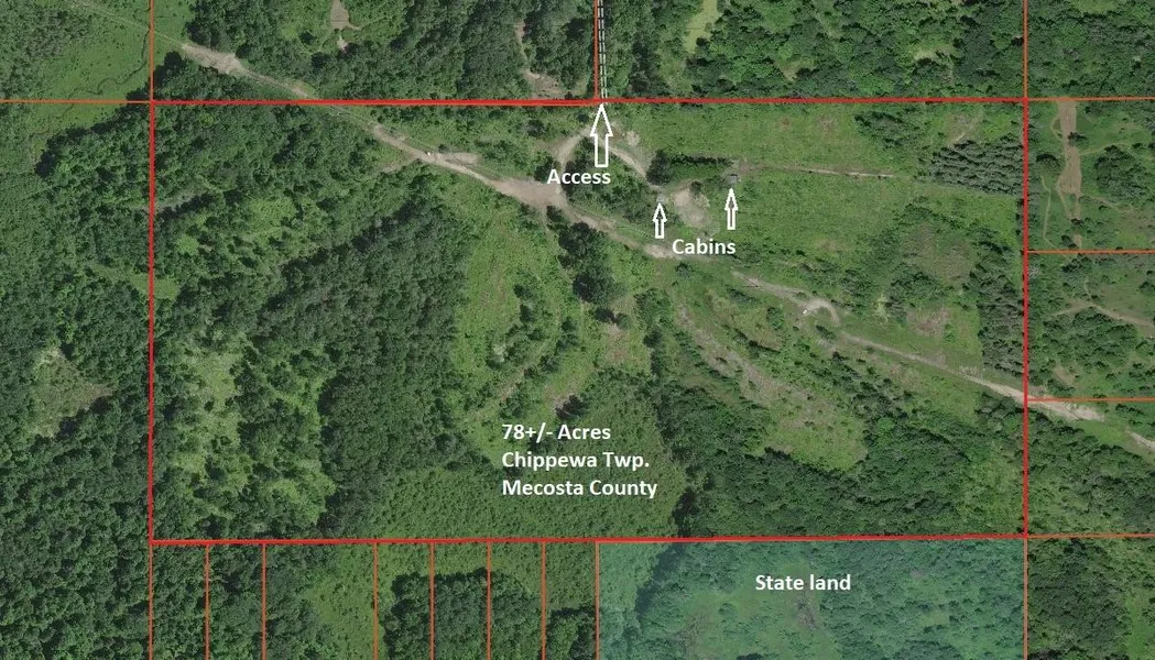 Don't miss out on this secluded chunk of big buck Mecosta County hunting property! Located at the end of 70th Avenue sits this approx 78 acre parcel of prime recreational land. There are 2 rustic cabins for shelter (1 could use TLC) & an old camp site perfect to sit & relax by the fire. There are several trails on the property & a power line that cuts diagonally through the land as well. I noticed LOTS of apple trees, tracks and trails while touring the property! There is State land to the south for even more hunting & recreational activities! Land is enrolled in Qualified Forest Plan & portion being split off from larger parcel. Give Brandon Podolak a call today at 989-251-9060 to view this property!!