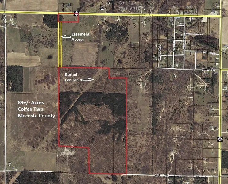 Located just West of Rodney! Here's 89+/- acres w/access by either legal easement off of M-20 from the 2 acre lot (potential to build a home and/or cabin!) that is included or by gated private access at the end of Arthur Road, this property offers great seclusion for both you and the wildlife! Great variety of both open areas for food plots and woods for cover to keep those big bucks and gobblers on the property! A trail system provides for access from North & South. Mecosta County has been producing nice bucks in the past several years & this property has potential to do the same, don't hesitate & call Brandon Podolak at 989-251-9060 for your private tour!