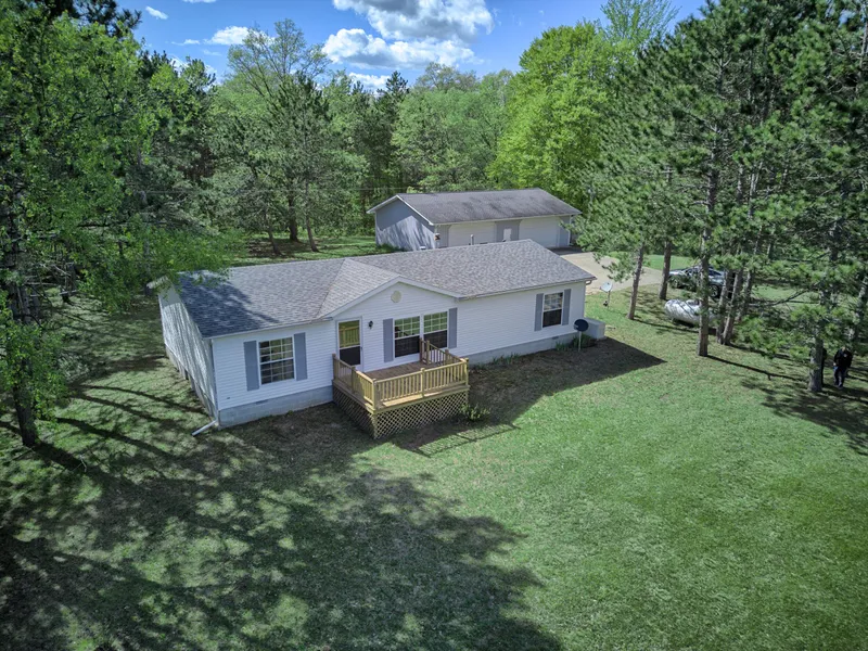 Beautiful country setting on 5 wooded acres near Horsehead Lake. Nice home featuring 3 bedrooms and 2 bathrooms. Open floor plan with slider to 19' x 10' back deck to enjoy the peaceful wildlife setting. The 48 x 32 garage with concrete parking area makes this a desirable property. Great location near Horsehead Lake.