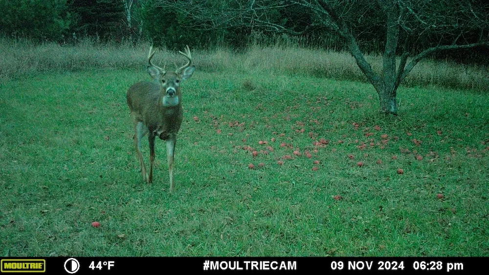 This property has it allPole barn with a finished living space built inside. A well and power provide a nice shower and running water in the building. It is heated with a very nice wood stove, a full kitchen, a large living room area, and a bunkroom. There is also plenty of room to expand inside the pole barn. The parcel is wooded but is surrounded by agricultural farms, corn, soy beans, and alfalfa, the whitetail smorgasbord. Several mature apple trees (standing food plots) are strategically placed around the property in travel corridors and near bedding areas. These apples provide a significant and desirable food source all fall and winter, and the deer here definitely take advantage of them. Several large trails lead to and from the apple trees everywhere. The neighbor/farmer to the east currently has alfalfa planted, and the deer here are pounding it every evening and morning. Again,...