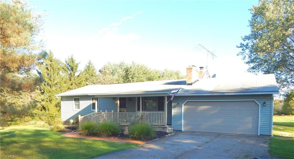 This 3 bedroom, 1.5 bath Ranch is set back on wooded 5.64 acres. Inviting front porch that leads to the spacious living room. Kitchen has plenty of cabinet space and sliding doors out to the backyard patio and deck. Dining room perfect for entertaining. Hot tub in an enclosed gazebo with a TV and surround sound. Above ground pool. Wood-burner tied to duct work. 2019 updates include: siding, flooring, painting, doors, trim, basement, deck, and sunroom/3 season room finished.