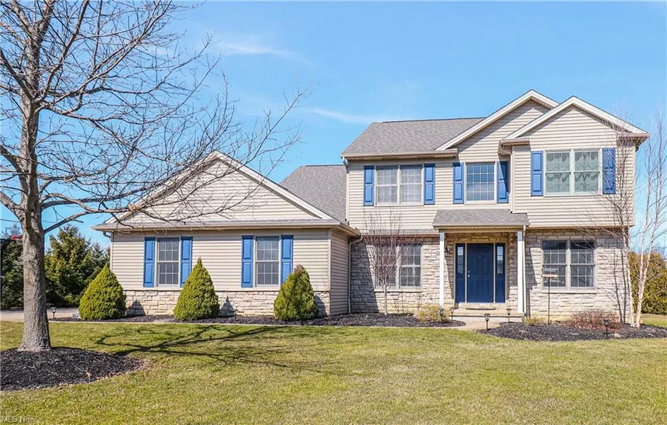The perfect balance of peaceful country and town living in this move-in-ready home in Lafayette Township! Picturesque scenic views on 2 acres in quiet development with custom homes but just 10 minutes from Medina Square! Beautiful luxury vinyl wood-grain tile just installed ('21) throughout first floor and in upstairs bathrooms. Entire home freshly painted in white and gray tones. New light gray carpet in bedrooms, hallway and stairway ('21). Completely renovated kitchen ('20) with granite countertops, soft close drawers with dovetail joints and under cabinet lighting. All appliances stay! Spacious two-story living room with stunning gas floor-to-ceiling stone fireplace and built in speakers. Private office with lots of natural light. Double staircase to 3 bedrooms and 2 full baths upstairs. Master bedroom with vaulted ceiling and spacious closet. Enjoy beautiful sunsets from your stampe...